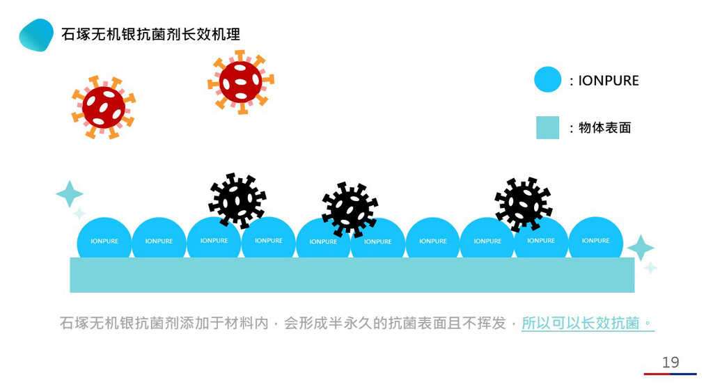 日本石塚硝子IONPURE无机抗菌剂是全球知名品牌!4大优点:抗菌性能、透明性、耐变色性、安全性!符合日本SIAA、美国EPA、FDA、欧盟BPR等认证!我司备有各树脂型号的抗菌母粒,在注塑、吹膜、